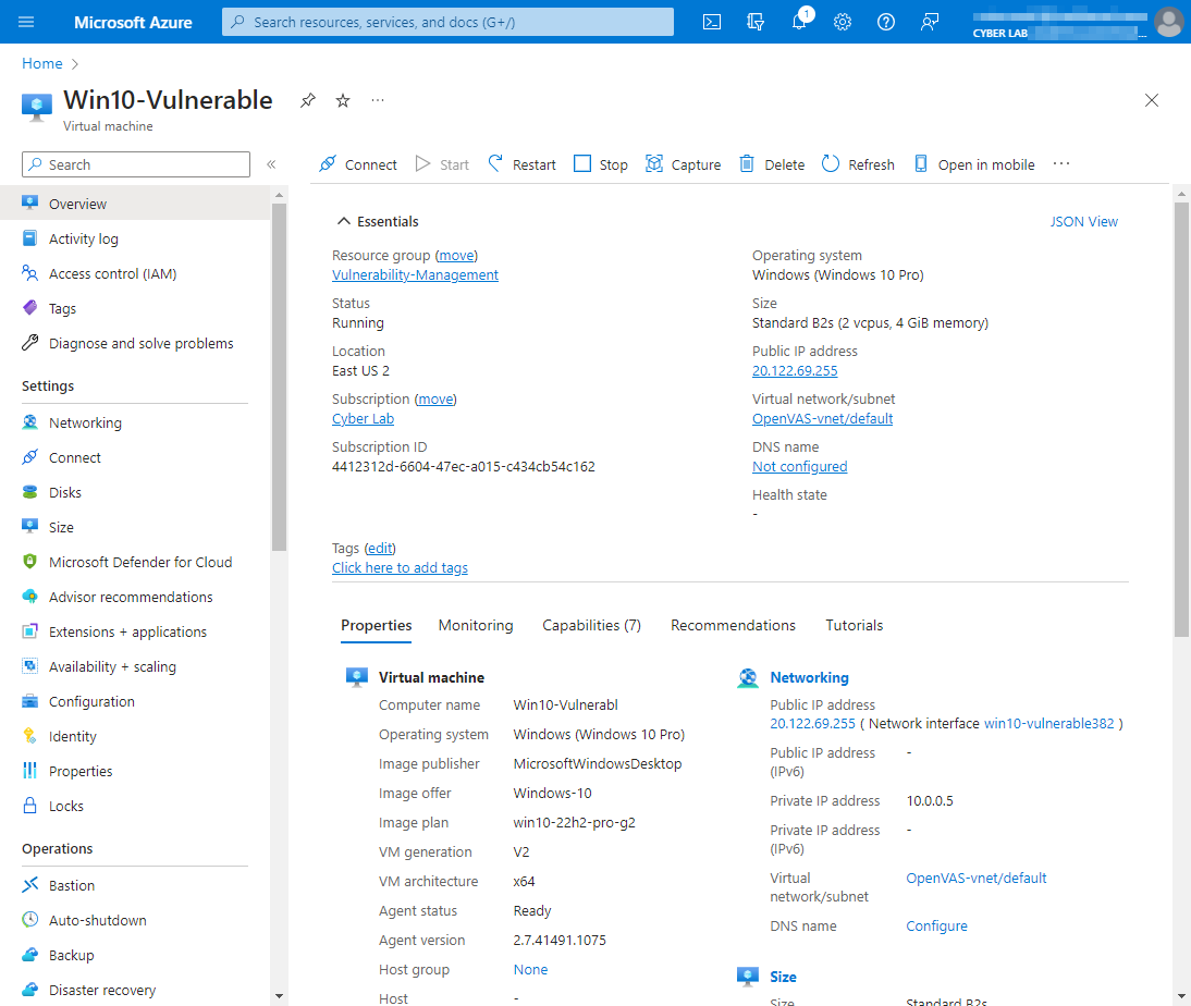 Back in the Azure Portal → Virtual Machines → Create In the same resource group and the same VNet as OpenVAS.